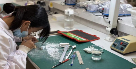 灯光聚焦下的实训台,成为同学们展现实操技能的舞台。选手们专注投入、手法娴熟,凝神聚力雕琢每一处细节,力求精准还原牙齿的形态结构,充分展现了扎实的专业基础和良好的实践素养。
