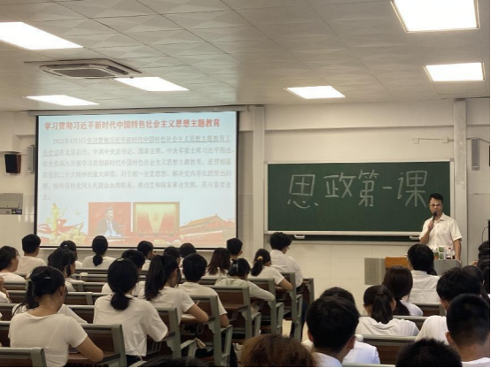 为深入学习贯彻习近平新时代中国特色社会主义思想主题教育的重要指示精神,用习近平新时代中国特色社会主义思想凝心铸魂,使肇医学子感悟思想伟力,汲取奋进力量,增强对党的思想政治认同,肇庆医学高等专科学校口腔医学院党支部书记、院长黎祺教授于2023年9月21日下午在新区校区课室1-107给口腔医学院全体党员、预备党员、学生干部及入党积极分子等讲授“思政第一课”,本次授课主题是:深刻理解习近平新时代中国特色社会主义思想的重要指导意义。